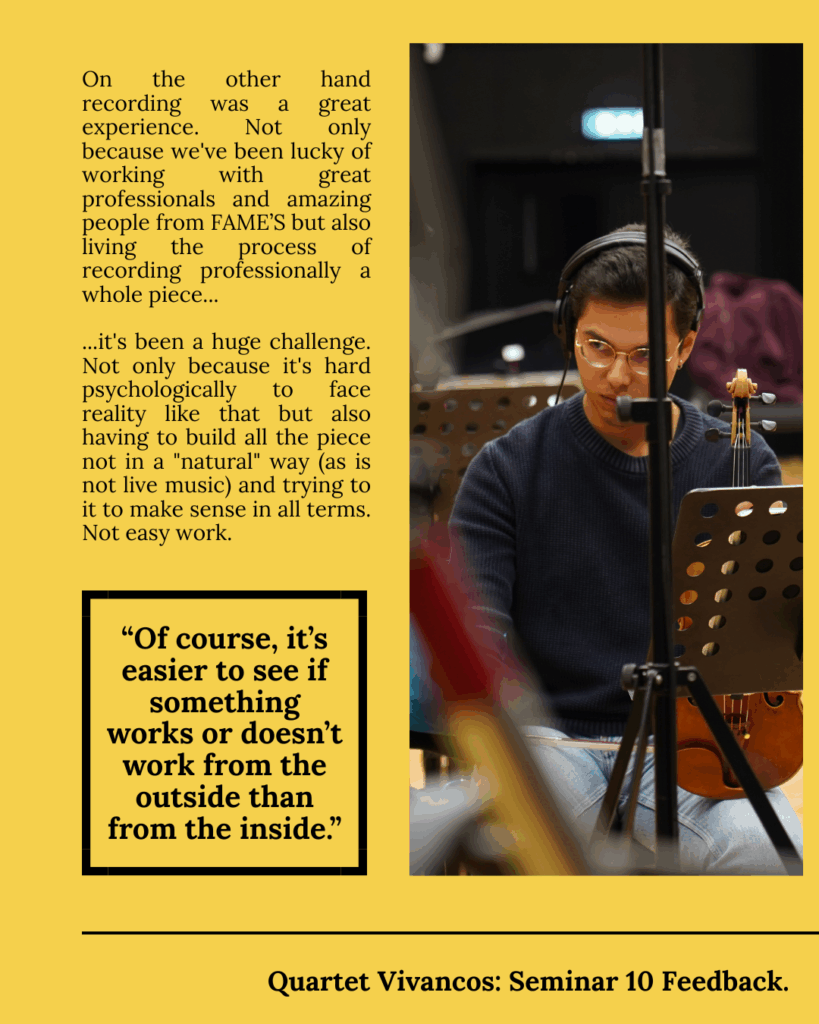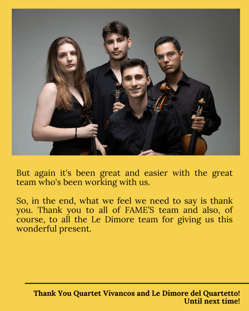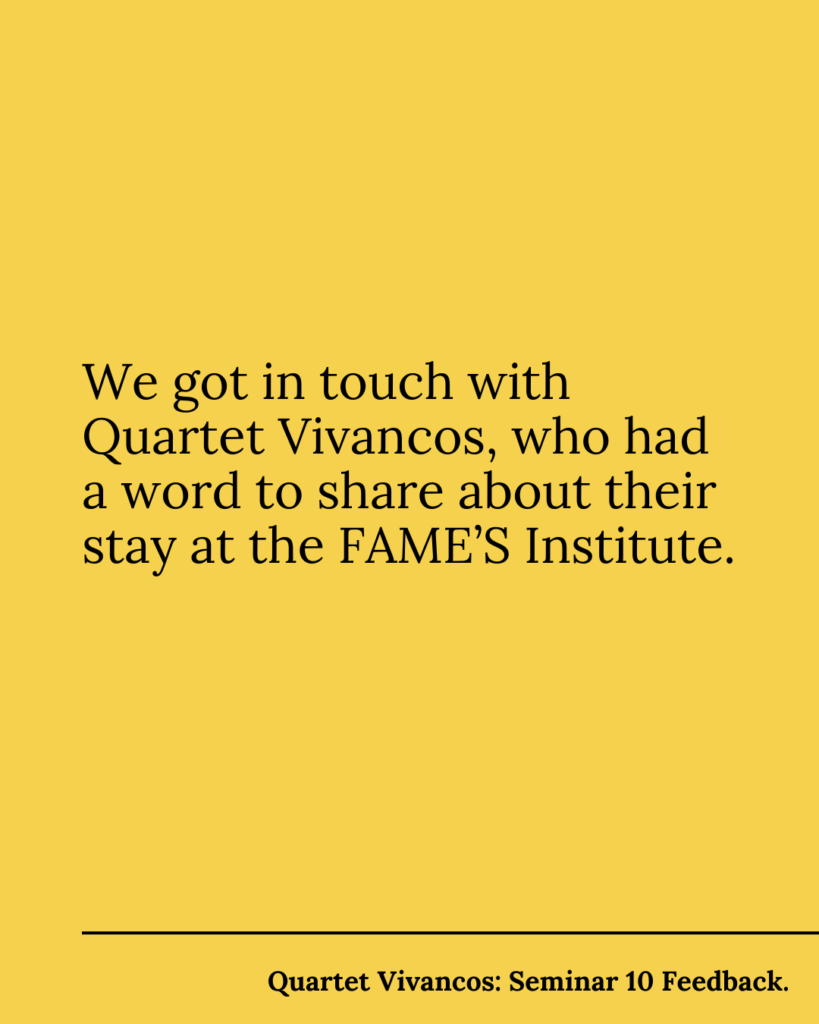 We got in touch with Quartet Vivancos, who had a word to share about their stay at the FAME’S Institute: