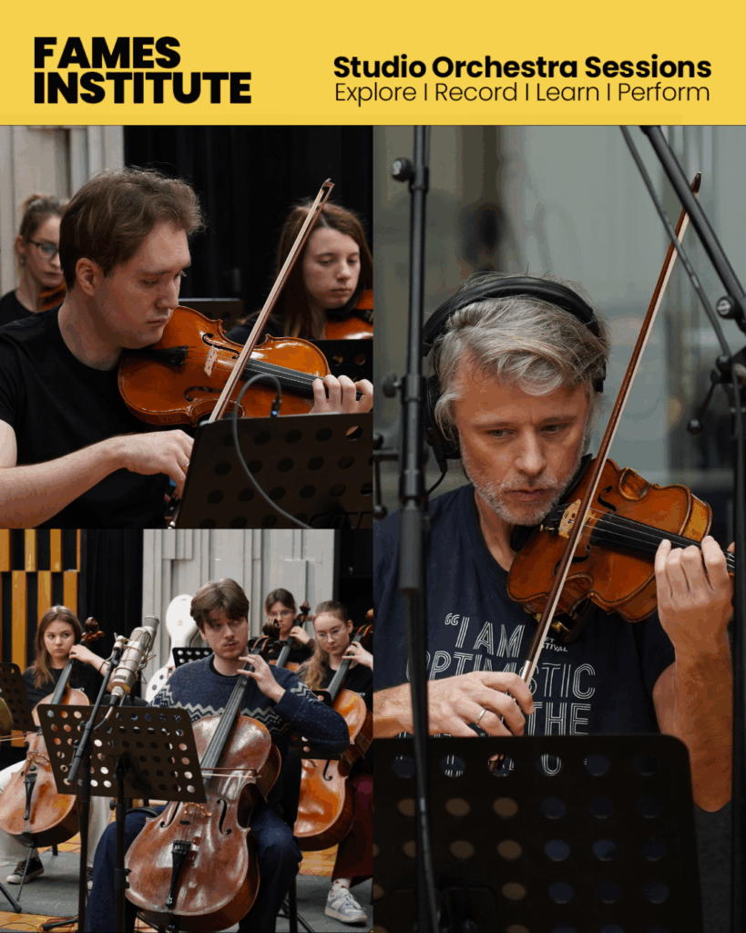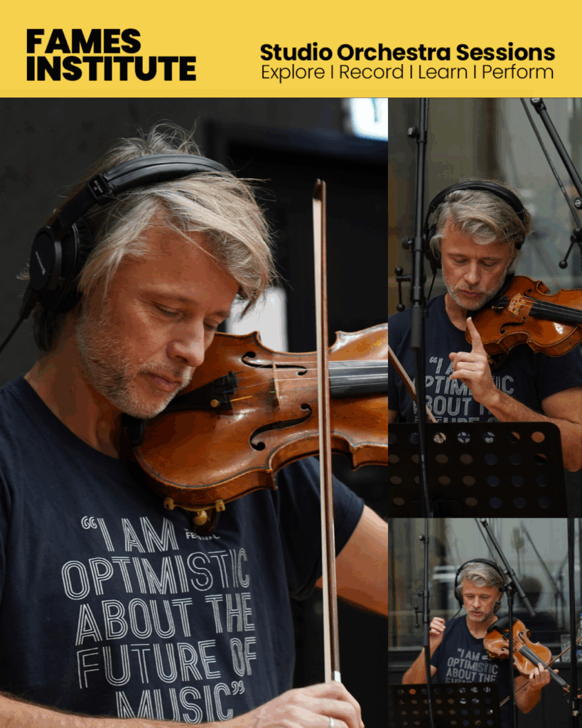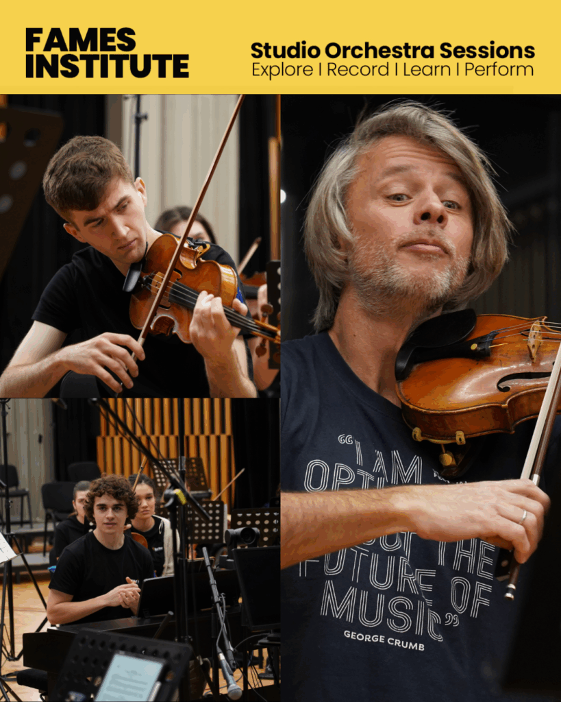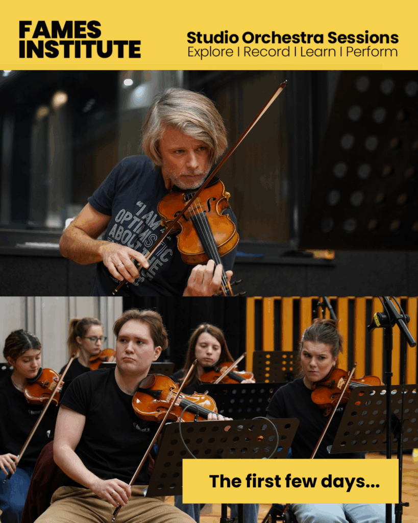 As we gear up toward the live rendition of Metamorphosen, Musica dolorosa and The American Four Seasons, Daniel Rowland and our Institute’s orchestra is hard at work between a whole slew of rehearsals, workshops, and lectures. Here’s a brief peak into their process during the first few days in the studio.