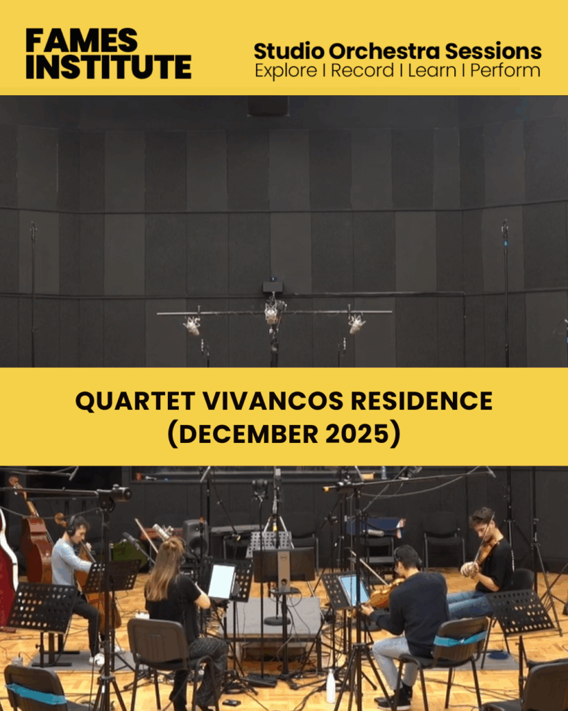During the four-day residency, the Vivancos Quartet worked intensively at FAME’S Institute, focusing on both professional recording sessions and in-depth rehearsal work. The ensemble recorded Dmitri Shostakovich’s String Quartet No. 8, dedicating each day to detailed studio sessions in close collaboration with FAME’S sound engineers.